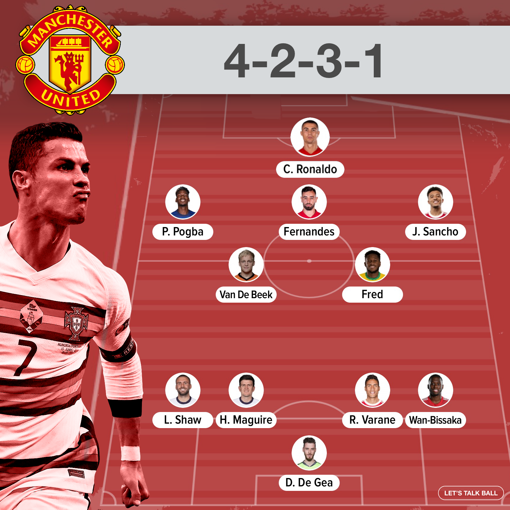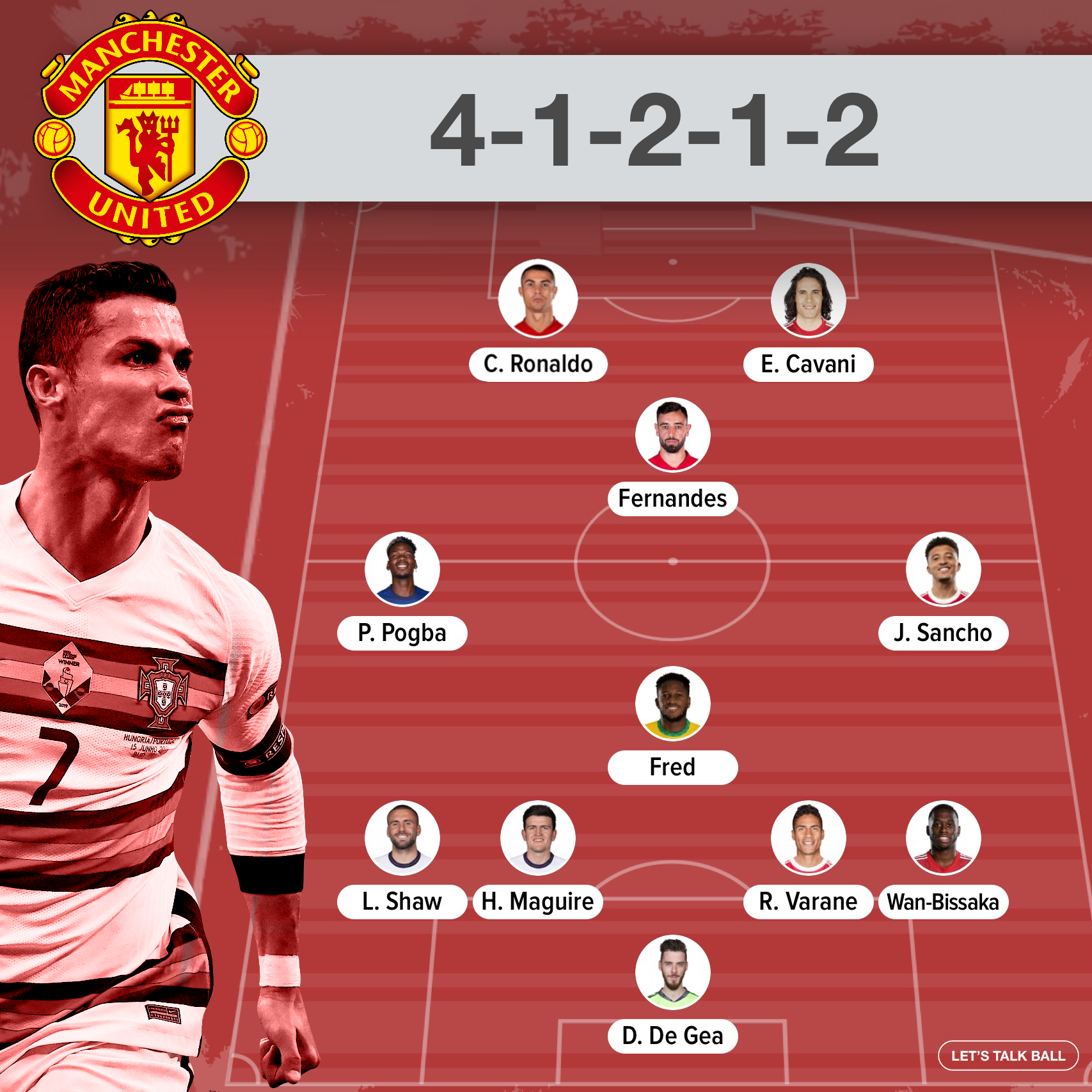 With this being said, here are three formations that I believe Ronaldo can shine in, without the other world-class attacking talent in Fernandes, Pogba, Cavani and Sancho being affected.