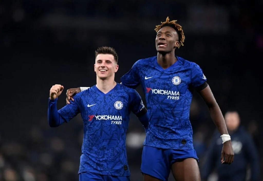 Mason Mount (left) and Tammy Abraham (right) celebrating together after the win against Tottenham Hotspur.