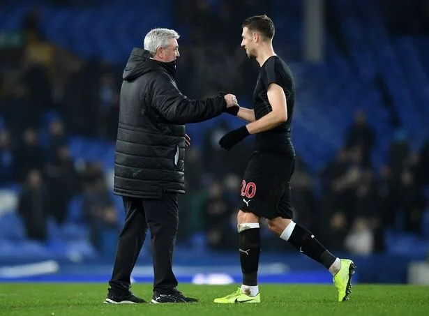 Newcastle United Manager; Steve Bruce (left) and scorer of a late-brace, Newcastle United Defender; Florian Lejeune (right) (image: Getty Images)