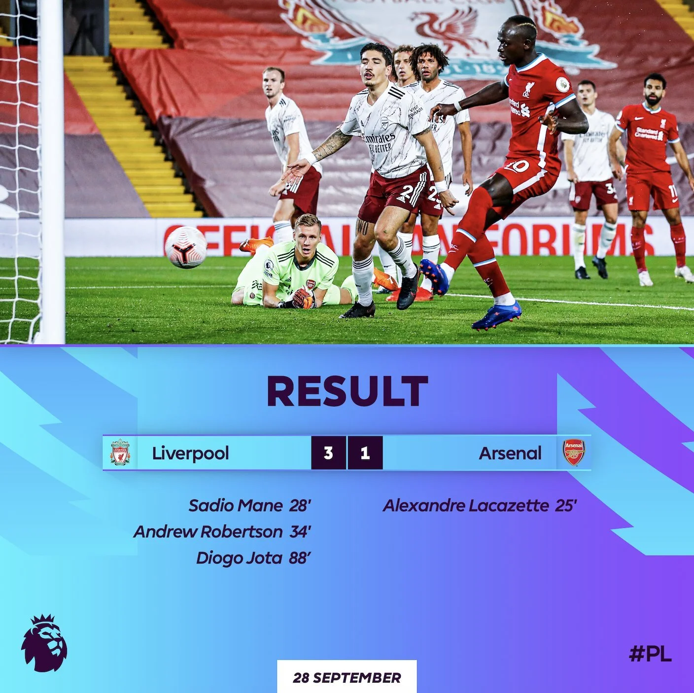 Liverpool further cemented their dominance with a convincing 3-1 win against Arsenal last night, despite a horror moment from Robertson setting up Lacazette’s early goal.